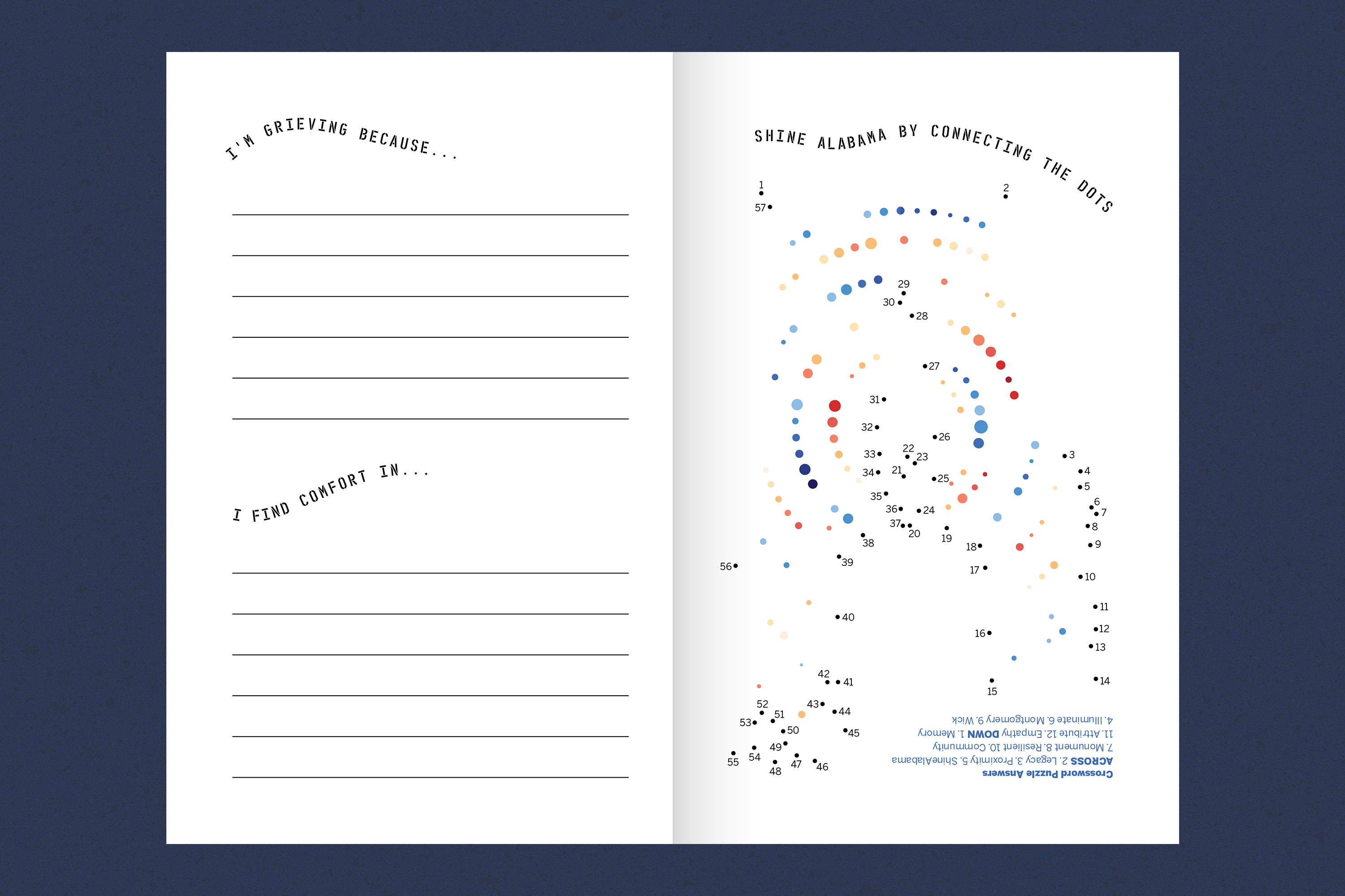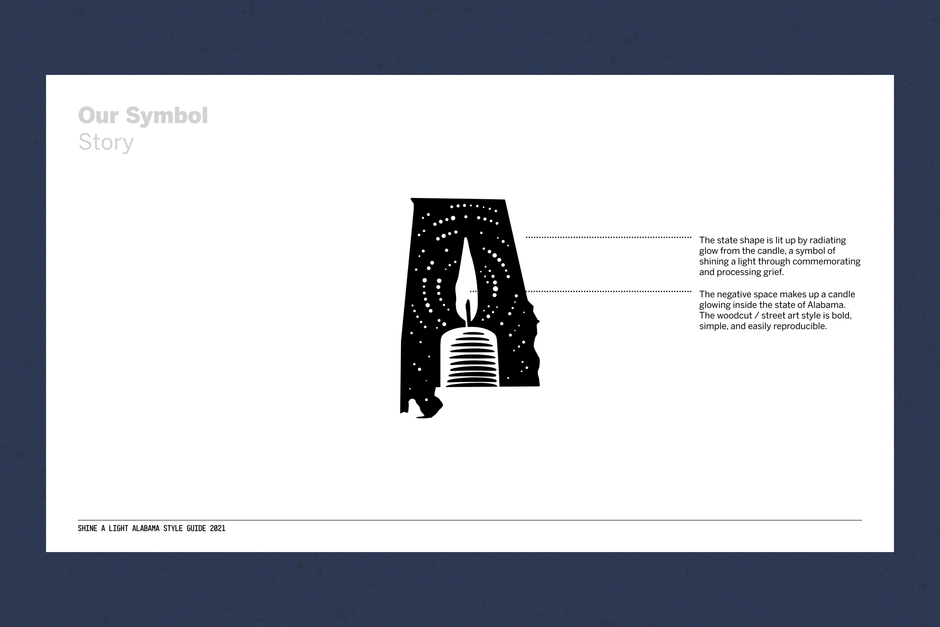 Shine a Light Alabama is a community-based effort of remembrance, resilience, and healing from losses experienced during the COVID-19 pandemic. To create the branding of this public health campaign, I collaborated with a local nonprofit and facilitated co-design sessions with Alabamians. The resource guide is a tool to help communities unite around the effort to honor lives lost and comfort those who mourn. It is available in English, Spanish, and Korean, the three most commonly spoken languages in the state of Alabama. Over 4,000 tote bags bearing the Shine a Light Alabama logo were created by local businesses and distributed across the state.